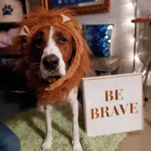 Blaze truly believes in his heart he’s a lap dog, and will prove it by plopping himself down on you like a 64-pound weighted blanket. He’ll parade around with his favorite toy like he’s just won the lottery, then curl up next to you at night as if you’re the final puzzle piece to his perfect day.