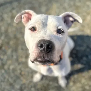 It’s a beautiful day in the neighborhood… and this Mr. Rogers would very much like to be your neighbor. No cardigan. No indoor shoe change. But he does come equipped with a soft expression, excellent listening skills, and a firm belief that friends are simply neighbors who have not scratched him behind the ears yet. Mr. Rogers approaches life with the same gentle optimism as his namesake. He already knows “sit,” which he performs with polite enthusiasm like a true gentleman of public television. He is currently expanding his academic portfolio into additional commands because this is a dog who believes in lifelong learning. Snacks as tuition are strongly encouraged. His specialty, however, is affection. Behind-the-ear scratches, neck rubs, and the kind of pets that make him close his eyes halfway and lean in like he is accepting a lifetime achievement award for Being a Very Good Boy. He does not host a television program, but he will absolutely host himself in your lap if invited. His love is not make-believe. It is very real, very loyal, and very ready to move right into your living room.