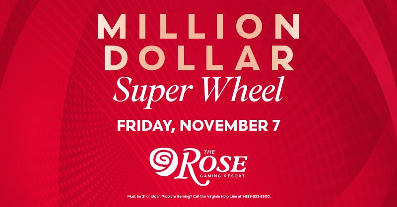 Join AJ at Rose Gaming Resort in Dumfries, Friday, the 7th, from 3-5p for their One Year- 1 Million Dollar Super Wheel Giveaway! Come celebrate and possibly walk away a millionaire! See you there!