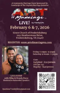 We all crave “the good stuff” in our marriages: resiliency, forgiveness, selflessness and all the rest. But how do we practice perfect love in our imperfect marriages? This marriage retreat will help you explore new levels of intimacy, communication, and connection with your spouse. It will show you how to live out the brilliant, untapped potential of marriage — which, in the eyes of God, is a true masterpiece. Cost: $39/person (earlybird pricing till Jan 23); regular price $49 after…