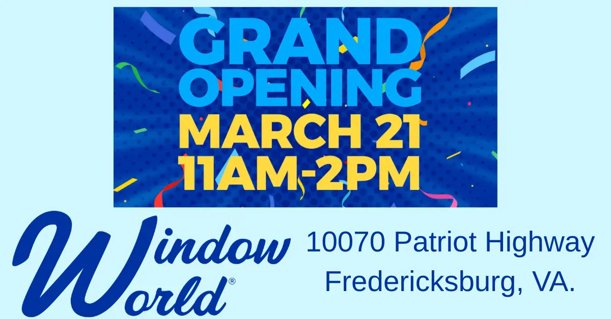 Join Bill Carroll at Window World of Fredericksburg’s Grand Opening from 11-2 pm at 10070 Patriot Highway. Don’t miss out on free food, discounts, giveaways, and activities for the kids- Bring your friends and family! See you there.