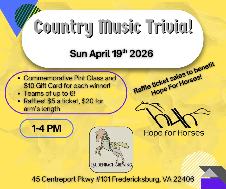Join us on April 19th for trivia at Laudenbach Brewing in Stafford! Grab your friends and head on over from 1-4pm to test your knowledge… all while enjoying great beer and a having fun afternoon with friends! Smashed Life food truck will be on site!