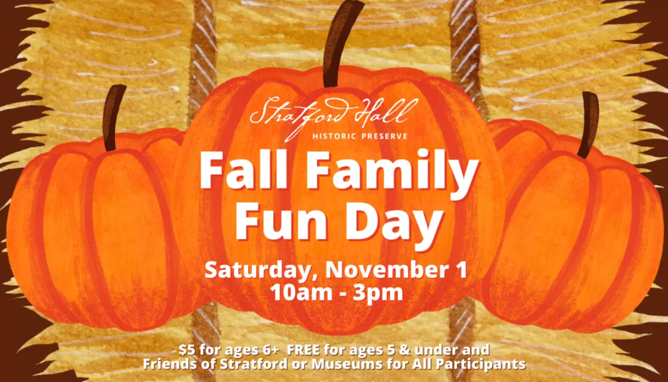 It’s nearly harvest time on Virginia’s Northern Neck! Fun for the whole family awaits at Stratford Hall Historic Preserve, including tractor wagon rides, take-home crafts, lawn games, scavenger hunts, pumpkin painting, and even pumpkin bowling. Don’t forget to explore the Great House with one of five unique audio tour experiences—including a special children’s audio tour. Visitors can also enjoy 10% off* in the Stratford Hall Gift Shop! (20% off* for Friends of Stratford members) *Some exclusions apply.