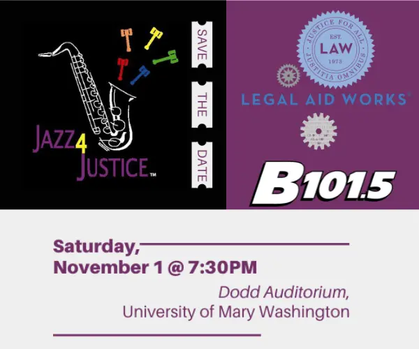 B101.5 is proud to support, Legal Aid Works and the UMW Jazz Ensemble’s 12th annual Jazz 4 Justice concert, at Dodd Auditorium on Saturday, November 1 at 7:30PM. Get your tickets NOW at https://www.legalaidworks.org/jazz4justice/