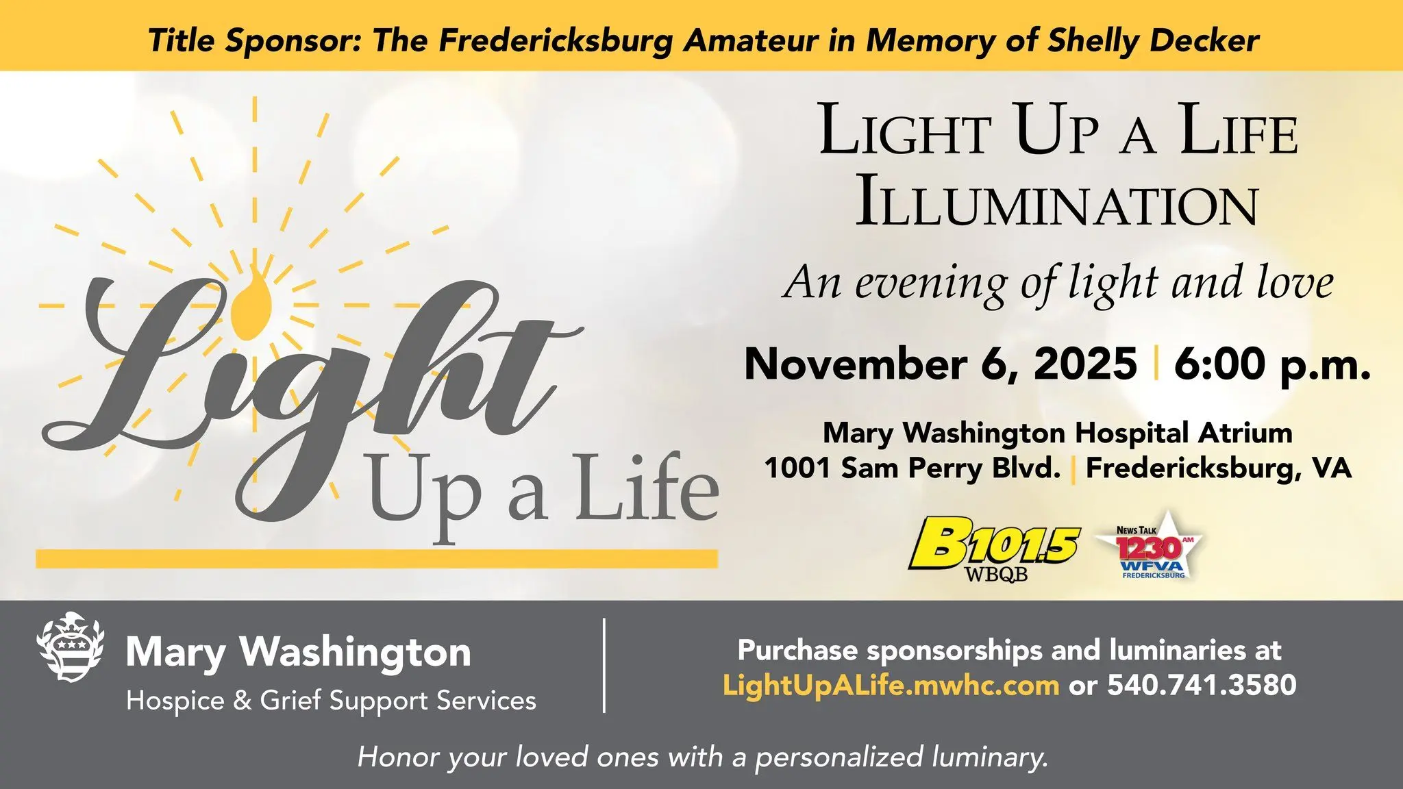 Proceeds from this illumination benefit Mary Washington Hospice. Tax ID number is 54-1552324.