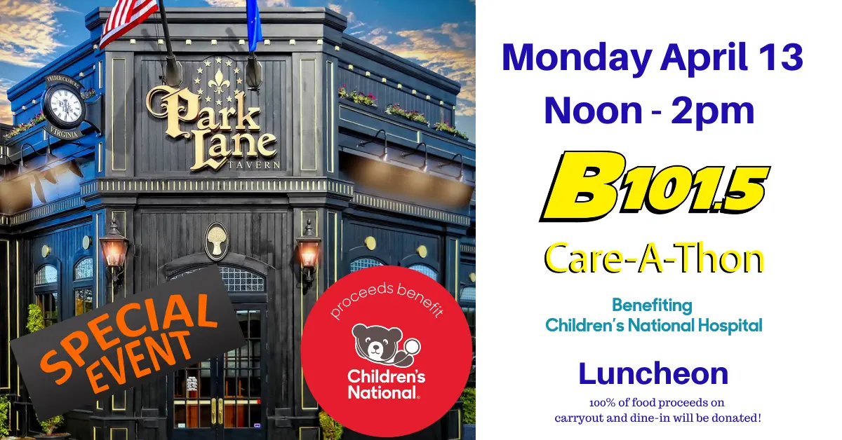 Park Lane Tavern has a passion for supporting children and families in our community. Monday, APRIL 13th from noon to 2pm, 100% of food proceeds on all carryout and dine-in food will be donated to Children’s National Hospital! Park Lane Tavern, Where Locals and Imports Unite!