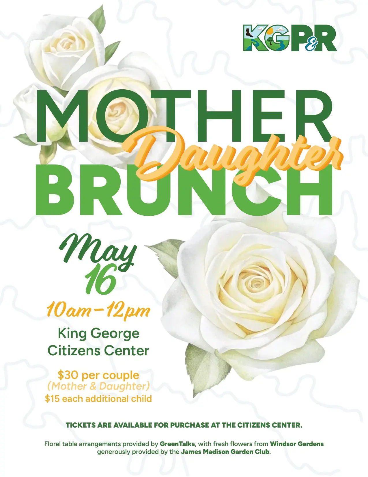 Join us on Saturday, May 16, from 10:00 AM – 12:00 PM at the King George Citizens Center for a heartwarming event that celebrates the special bond between mothers and daughters.