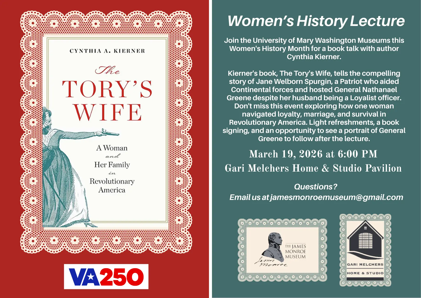 Join the University of Mary Washington Museums this Women’s History Month for a book talk with author Cynthia Kierner.