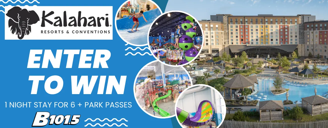 Get ready to make a splash! B101.5 could be sending YOU to Kalahari Resorts and Conventions—Opening late 2026 and home to one of the largest indoor waterparks in the country, with luxury accommodations, nonstop fun, and something for everyone.