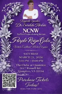 Guests will enjoy an elegant evening of food, dance, and fellowship, and raise funds that will enable the National Council of Negro Women Stafford-Fredericksburg Section to continue the legacy of Dr. Mary McLeod Bethune. For over 25 years our mission is to meet critical local community needs through outreach initiatives that provide meals for the homeless, support families affected by domestic violence, raise social justice awareness, host health fairs, and offer free educational webinars on mental health, financial literacy, and…