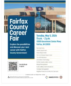 Open to all the public for free. Fairfax County Government is hosting a Career Fair with the following agencies looking for individuals like you. Agencies attending: Park Authority Health Department Police Department Fire and Rescue Department Tax Administration Information Technology Fairfax County Public Library Waste Management Public Safety Communications Facilities Fire Marshall’s office Plus more!
