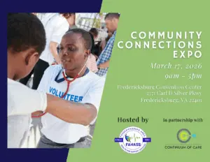 The Community Connections Expo is an all-day event that connects individuals and families to free community resources and vital health services in the Fredericksburg area. Attendees will have a chance to learn what services are available to them regionally, sign up for eligible assistance, and walk away with resources they need to make meaningful changes in their lives. Vendors include: – nonprofit & community organizations – businesses with free community programs – social service providers & partners – direct service…